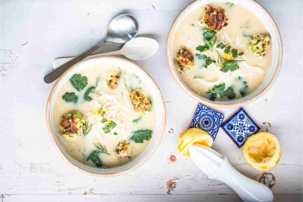 Der mediterrane Zitronen-Geschmack dieser Hühnersuppe griechischer Art lässt einen sofort an Sonne, Mittelmeer und Olivenhaine denken. Würzige Hackbällchen, zarte Reisnudeln und Weißwein runden den Geschmack harmonisch ab. Das wunderbare Rezept bekommt man bei „Dinner um Acht".